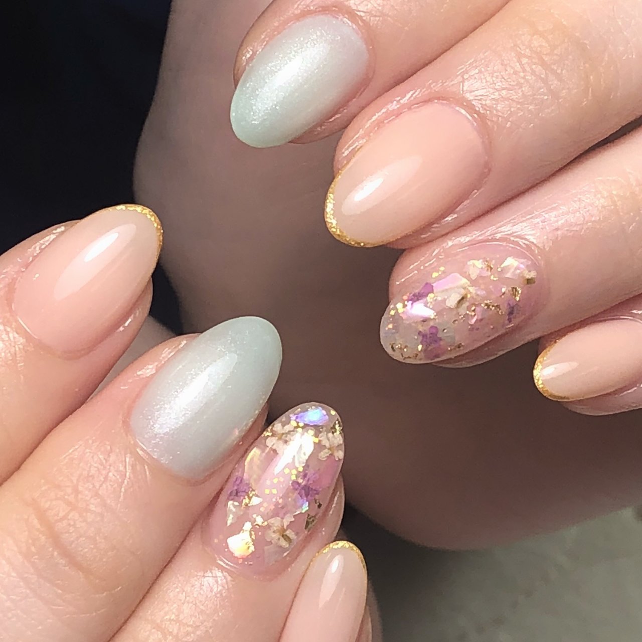 春 シンプル シェル ピンク グリーン Loa Nailのネイルデザイン No ネイルブック