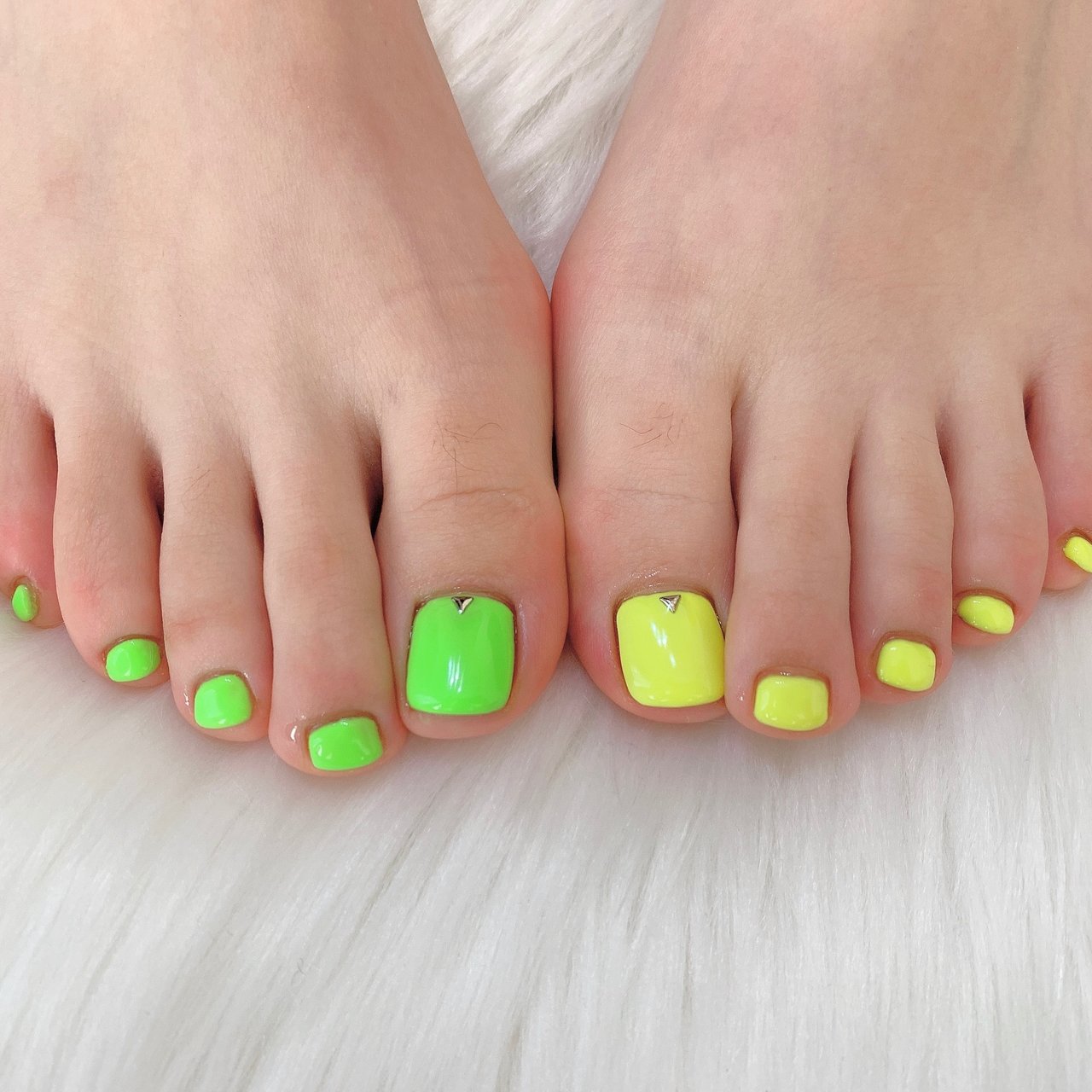 夏 フット シンプル ワンカラー ネオンカラー カ レ ンのネイルデザイン No ネイルブック